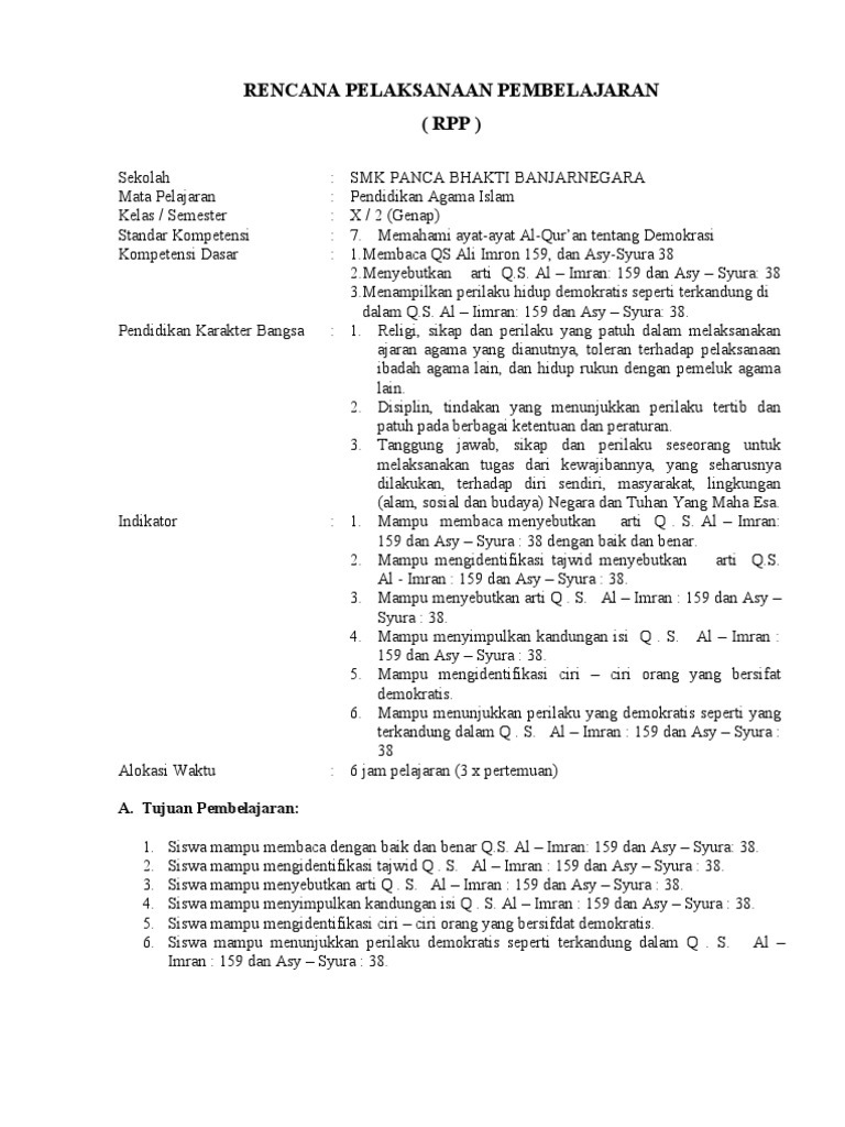 Download Gratis RPP PAI Kurikulum 2013 SMA Doc Format Microsoft …