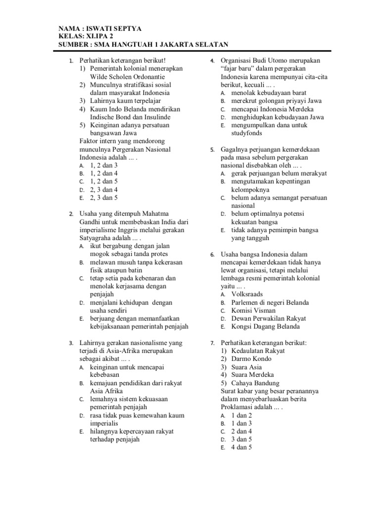 Soal dan Kunci jawaban Sejarah Kelas XI.docx