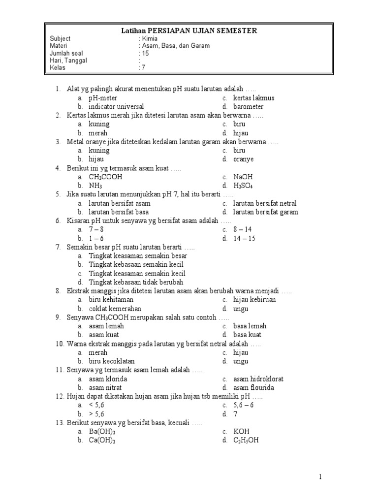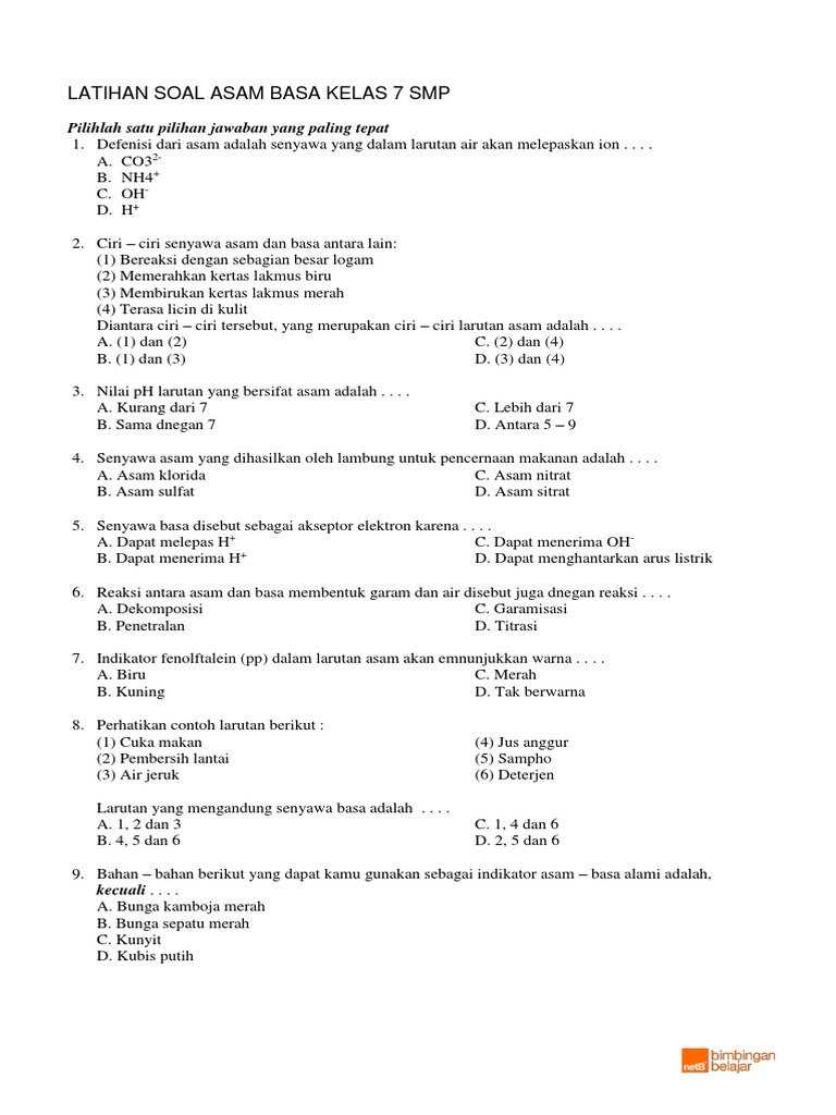 Bab Asam Basa - Contoh Soal Definisi Asam - Fisika SMP Edisi …