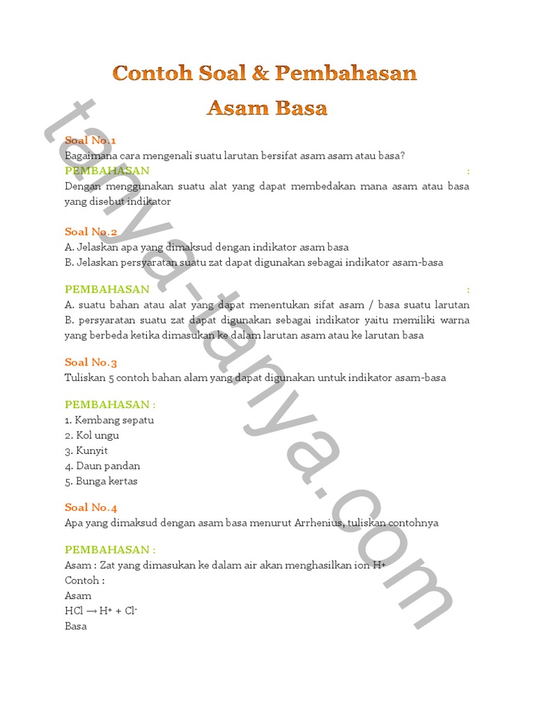 Contoh Soal Dan Pembahasan Asam Dan Basa - Contoh Soal Terbaru
