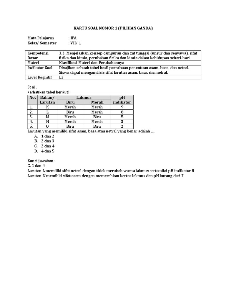 Bank Soal IPA Kelas 7 SMP Materi Asam, Basa Garam + Kunci Jawaban …