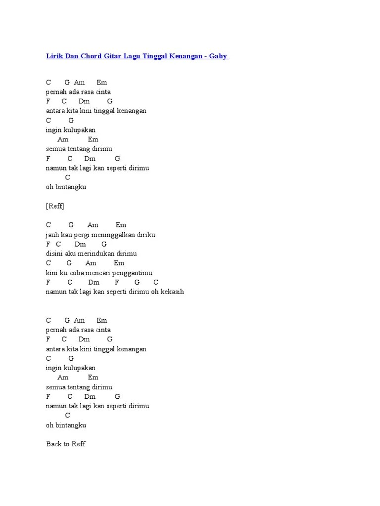 DOC) Lirik Dan Chord Gitar Lagu Tinggal Kenangan -Gaby | ribhi …