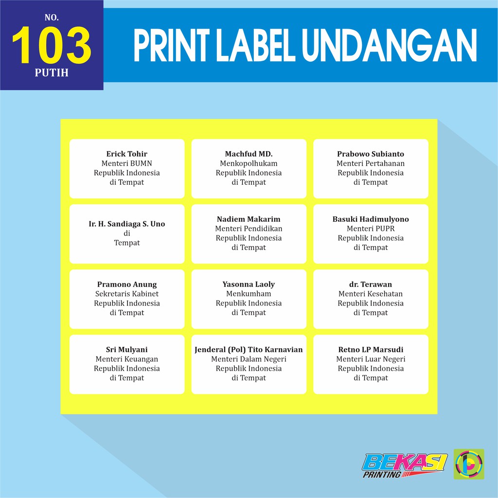 Cetak Stiker Label Nama Undangan Custom Size Label 100, 102, 104, 105, 121, 124, 126, 127, 129 dll | Shopee Indonesia