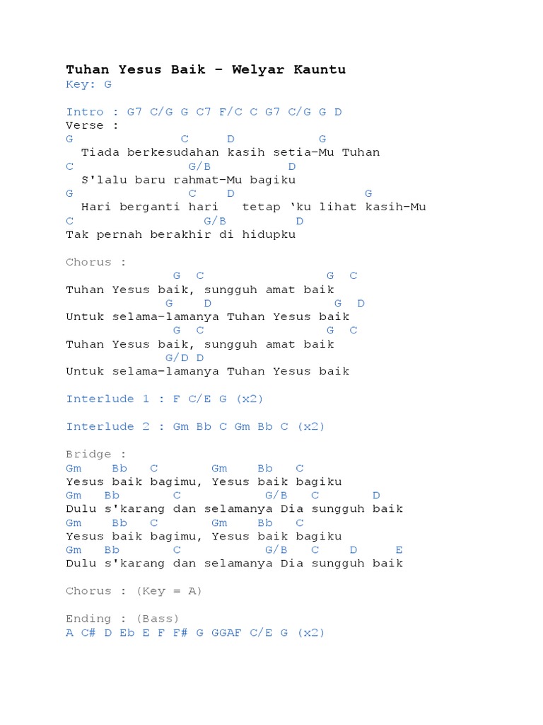Tuhan Yesus Baik chords & lyrics - Welyar Kauntu | Psalmnote