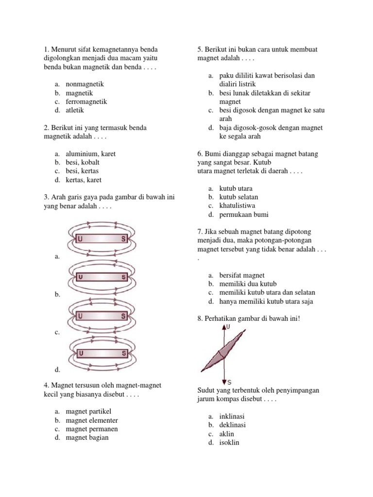 Soal Latihan Kemagnetan Kelas 9 Pilihan Ganda Dan Esay