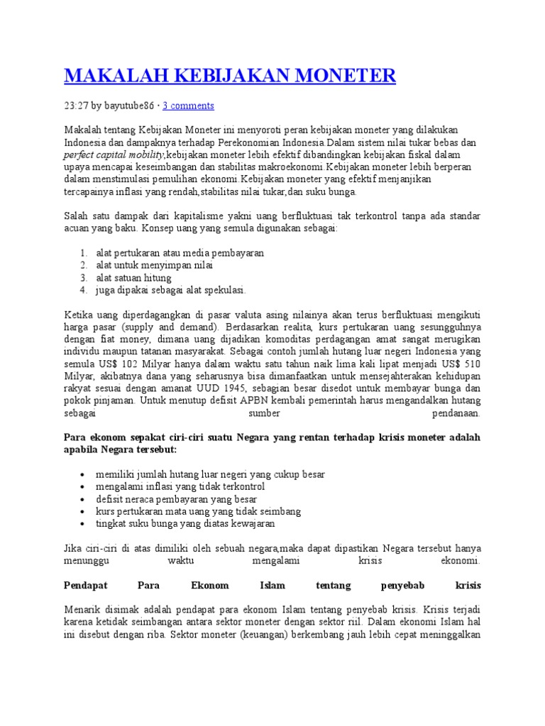 Bab .Web viewMakalah kebijakan moneter ini menyoroti kebijakan …