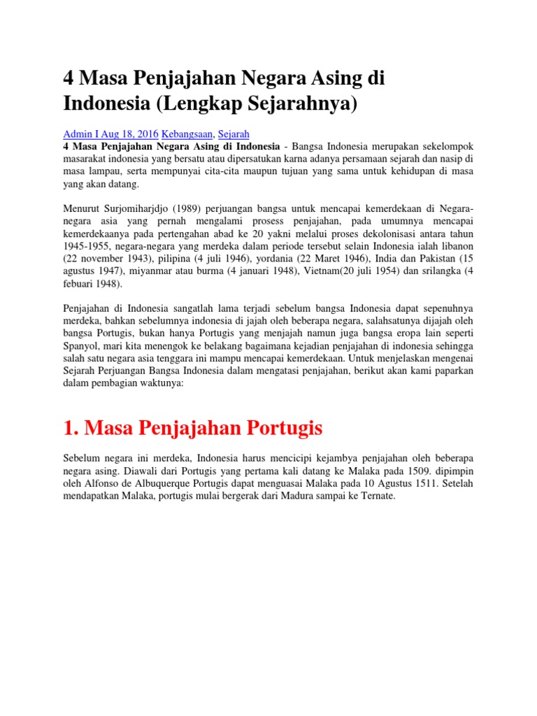 DOC) Sejarah Zaman Penjajahan di Indonesia | Aan Hadi - Academia.edu