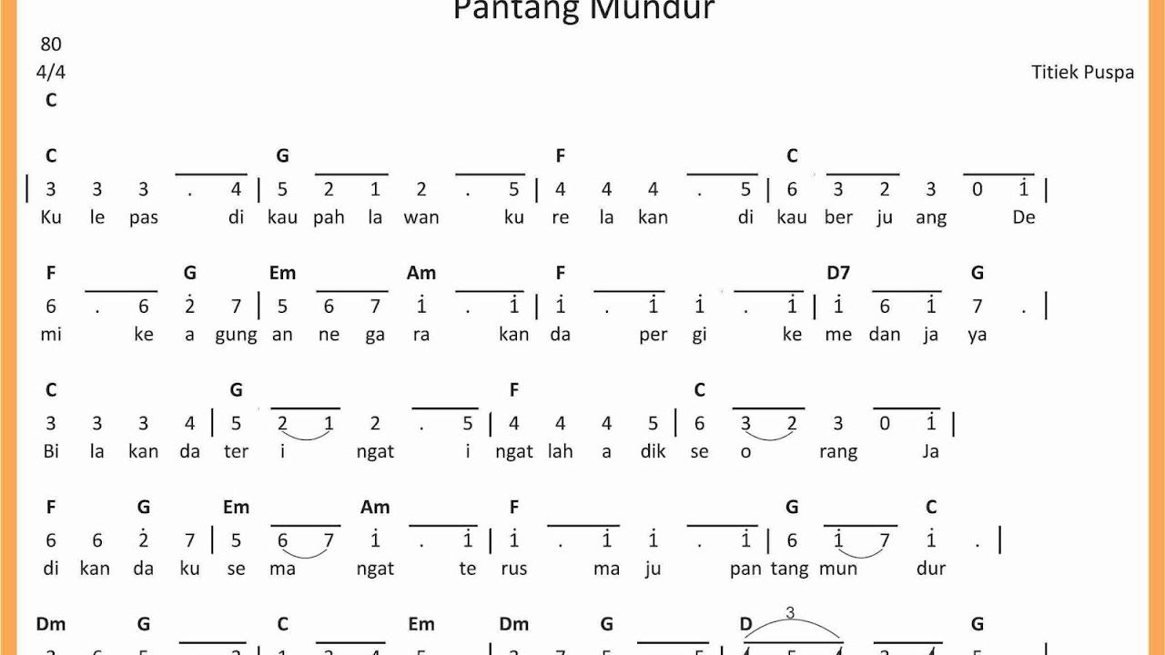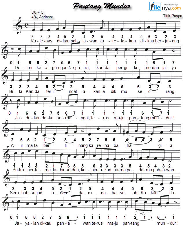 Not Angka Lagu Pantang Mundur Titiek Puspa - Kumpulan Not Lagu