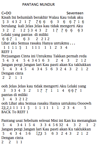 Not Angka Lagu Pantang Mundur - Not Lagu Lengkap