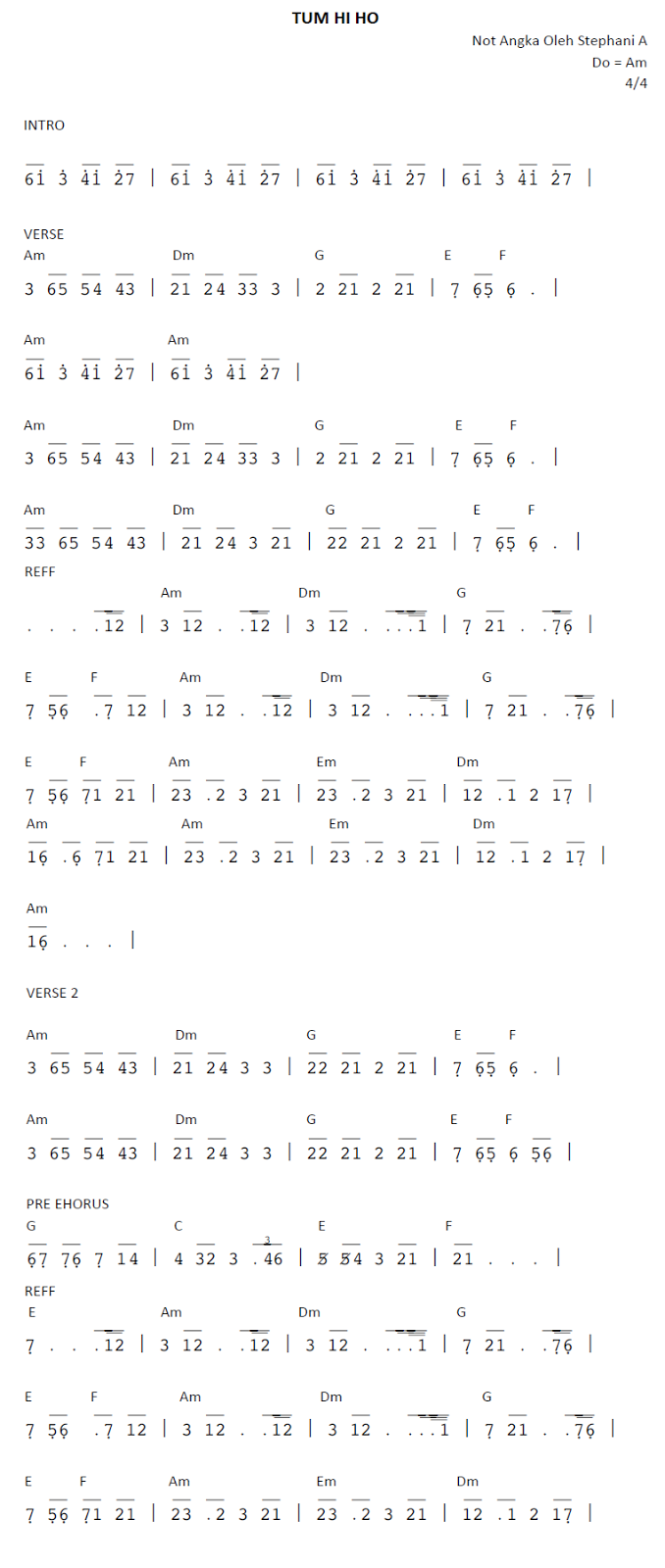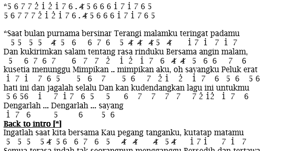 Not Angka Lagu Sampai Aku Tutup Usia