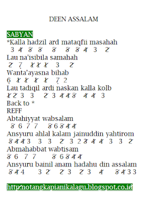 Not Angka Lagu Deen Assalam - Kumpulan Not Lagu