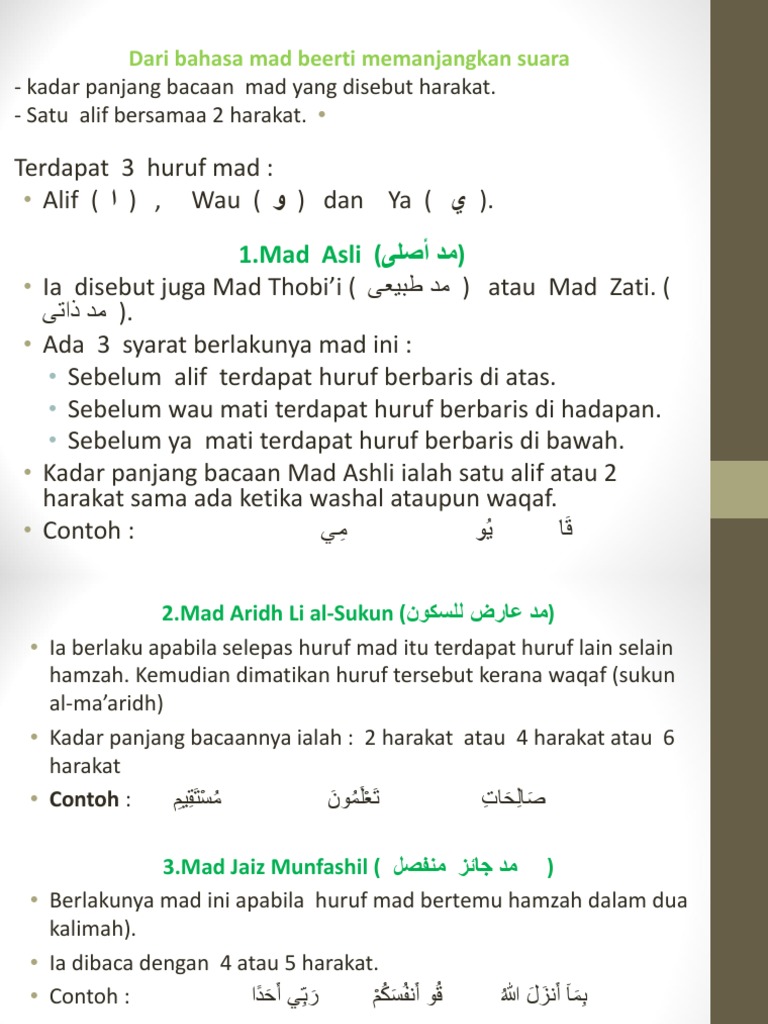 Bacaan “MAD” (bunyi panjang) di Dalam Al-Qur’an Pada Dasarnya Ada Tiga Huruf. - Kajian Islam