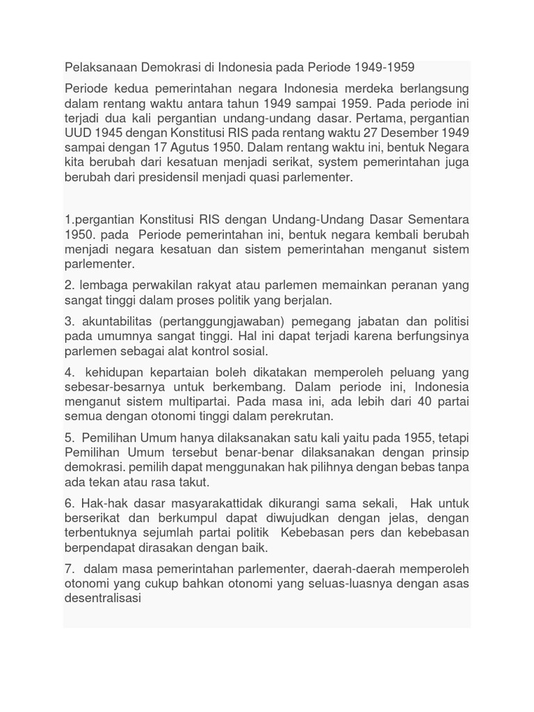 Pelaksanaan Demokrasi di Indonesia pada Periode 1949 - 1959 ~ PPKn …