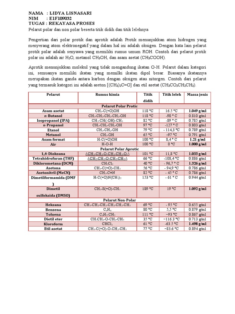 Pelarut Polar Dan Non Polar dengan titik didh dan leleh