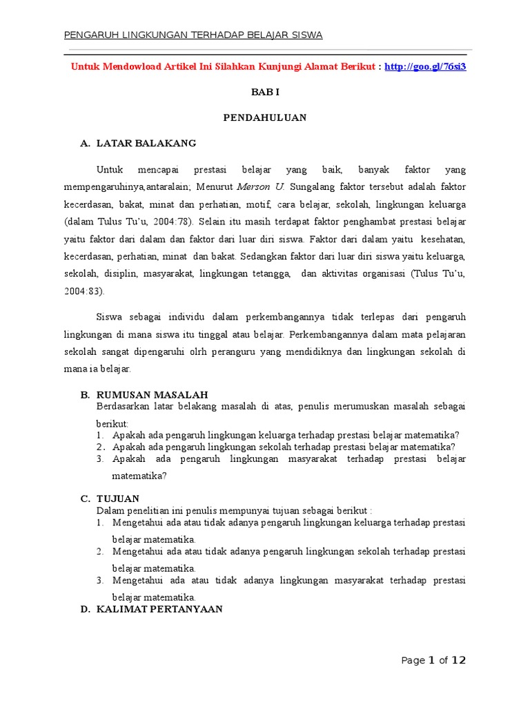 Pengaruh Lingkungan Terhadap Prestasi Belajar Siswa Pdf - Cara …