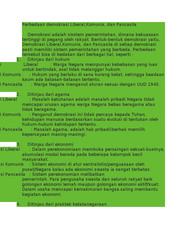 Perbedaan Demokrasi Liberal Komunis Dan Pancasila