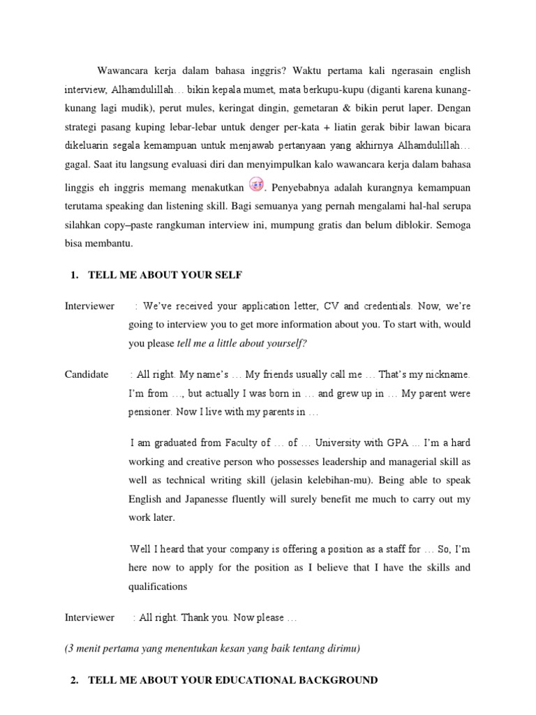 Contoh Interview Kerja Dalam Bahasa Inggris Beserta Artinya …