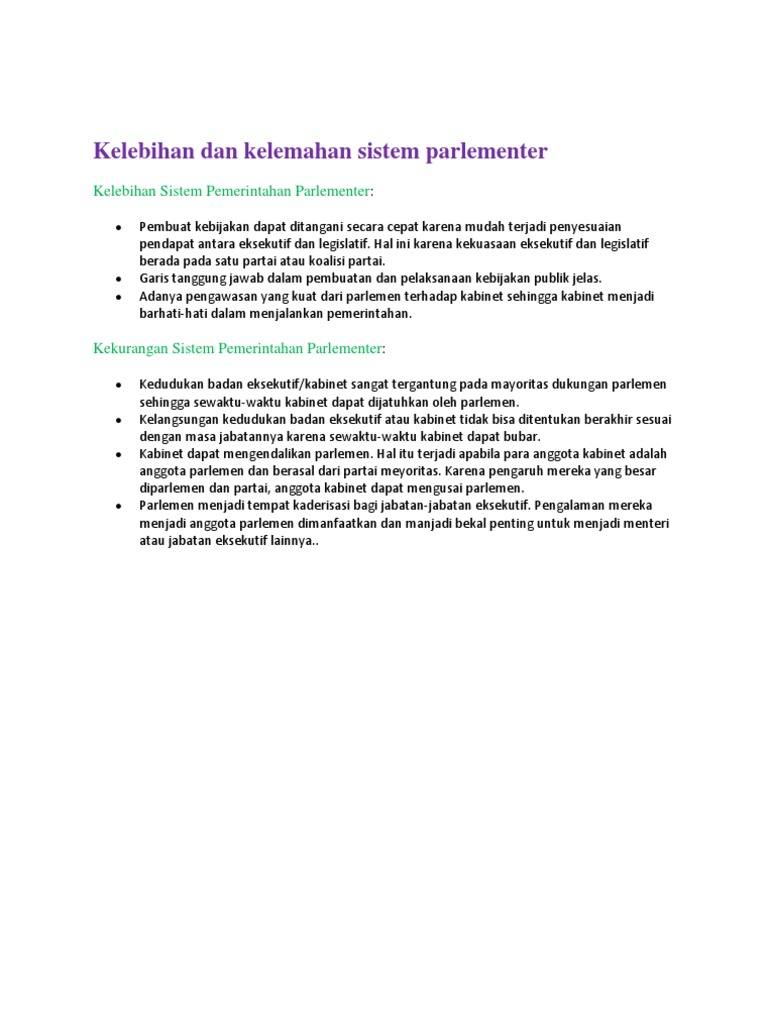 Kelebihan Dan Kelemahan Sistem Parlementer