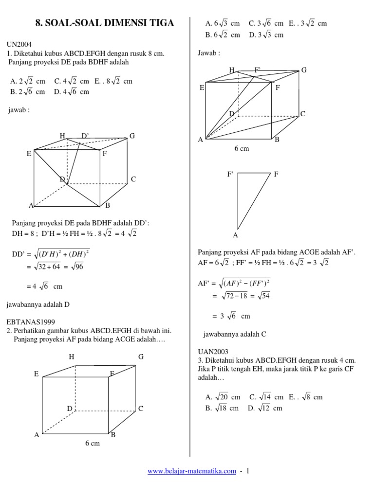 Soal Latihan dan Pembahasan Dimensi Tiga - PDF Download Gratis