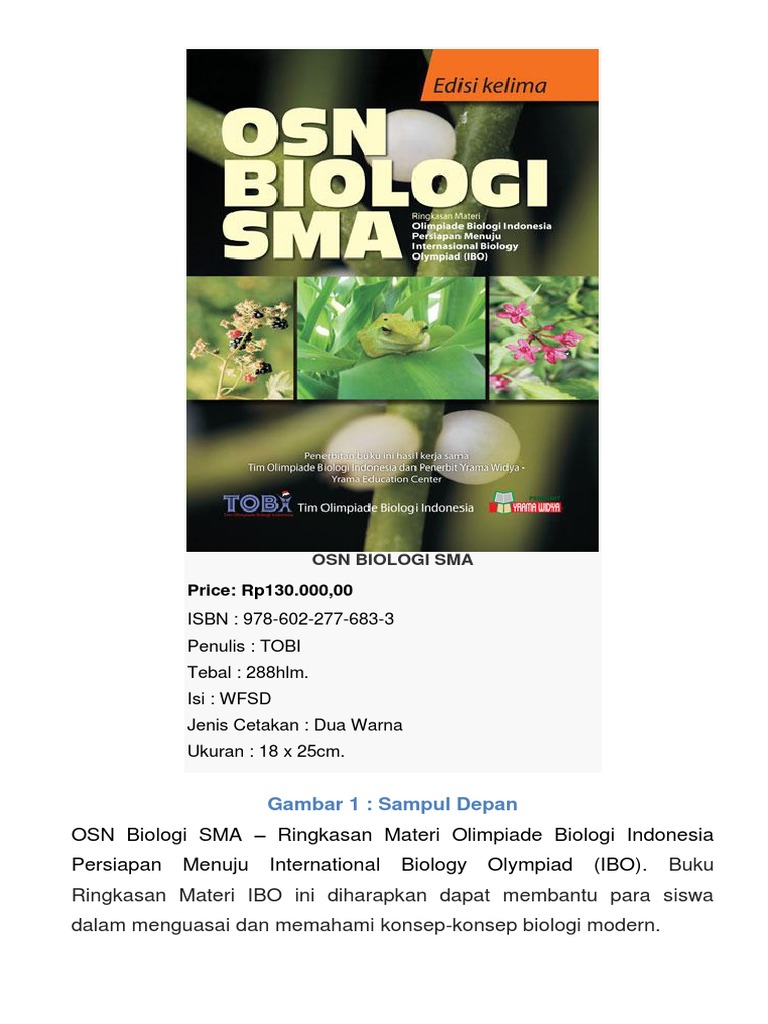 BUKU OSN SMA-LATIHAN SOAL OSN BIOLOGI SMA EDISI KE ENAM 2016-2018 JILID 1 | Shopee Indonesia