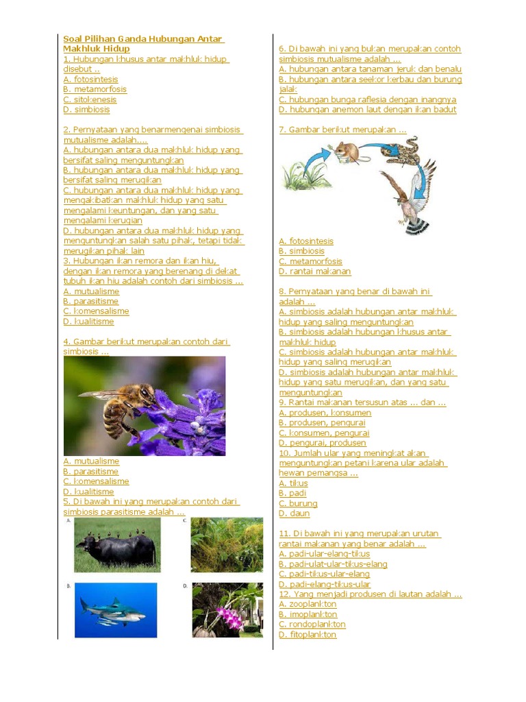 Soal Hubungan Antar Makhluk Hidup dengan Lingkungannya (Simbiosis …
