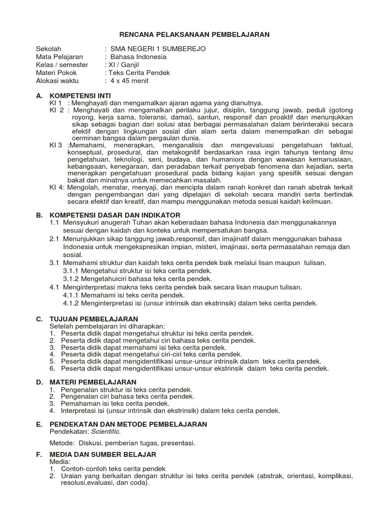 Contoh RPP teks cerpen