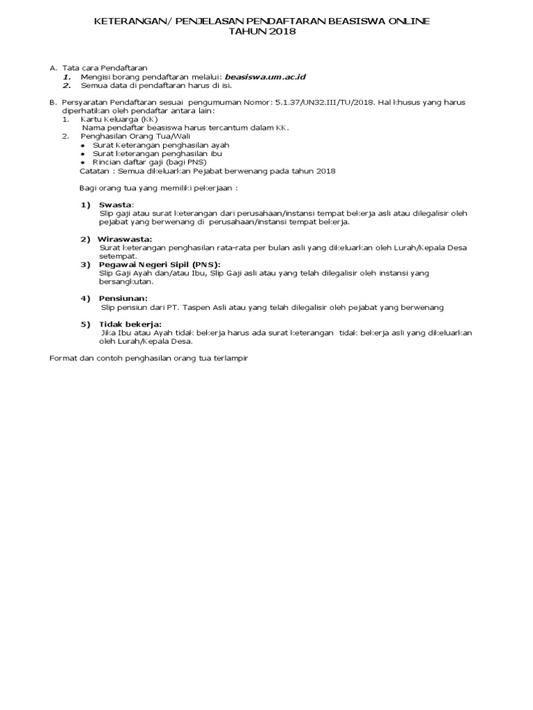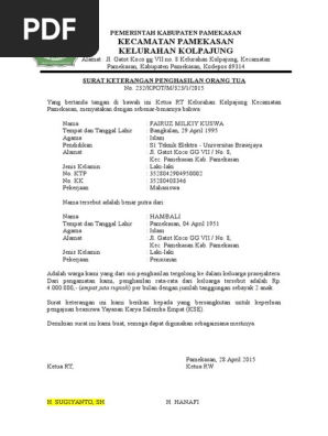 Contoh Surat Keterangan Penghasilan Orang Tua Untuk Daftar Kuliah Pdf