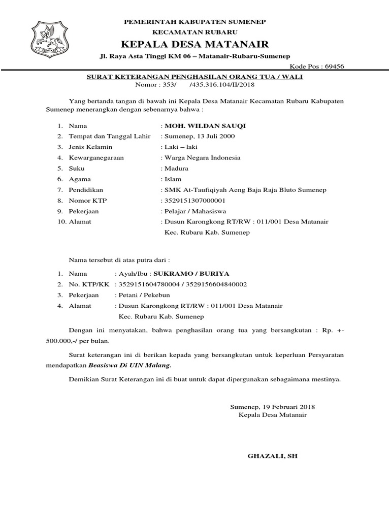 Surat keterangan penghasilan orang tua - [DOC Document]