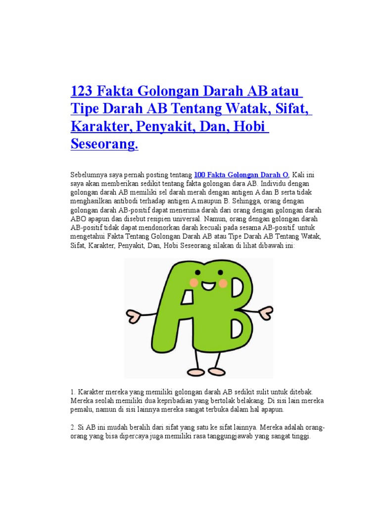 Info Pendidikan dan Umum: 123 Fakta Golongan Darah AB atau Tipe Darah AB Tentang Watak, Sifat, Karakter, Penyakit, Dan, Hobi Seseorang.